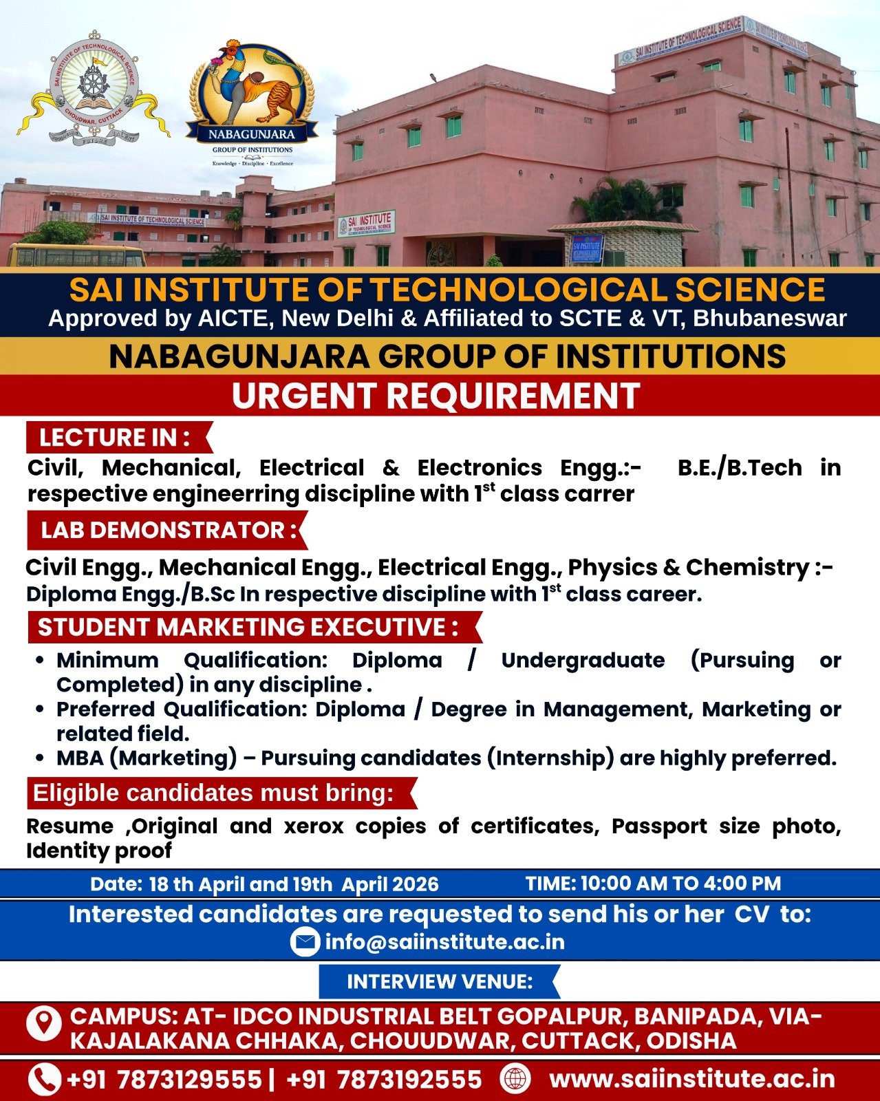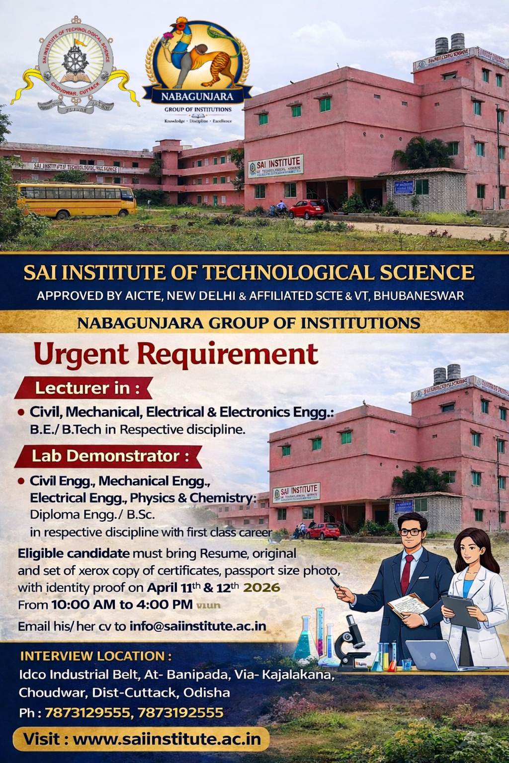 Welcome to SAI Institute of Technological Science, Cuttack. Whether you want to be an engineer or like to be involved in the college..